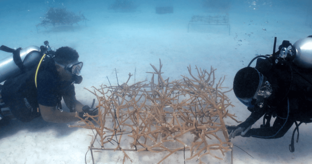 Combining coral reef restoration and carbon-neutral tourism