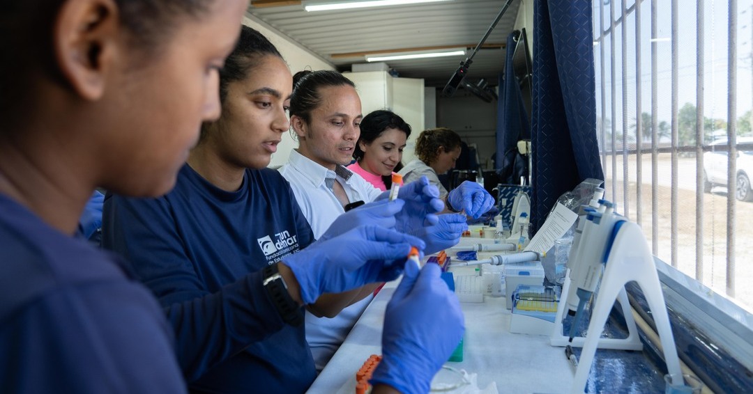 The team of researchers in the Dominican Republic process samples after returning from the field. Photo: FUNDEMAR